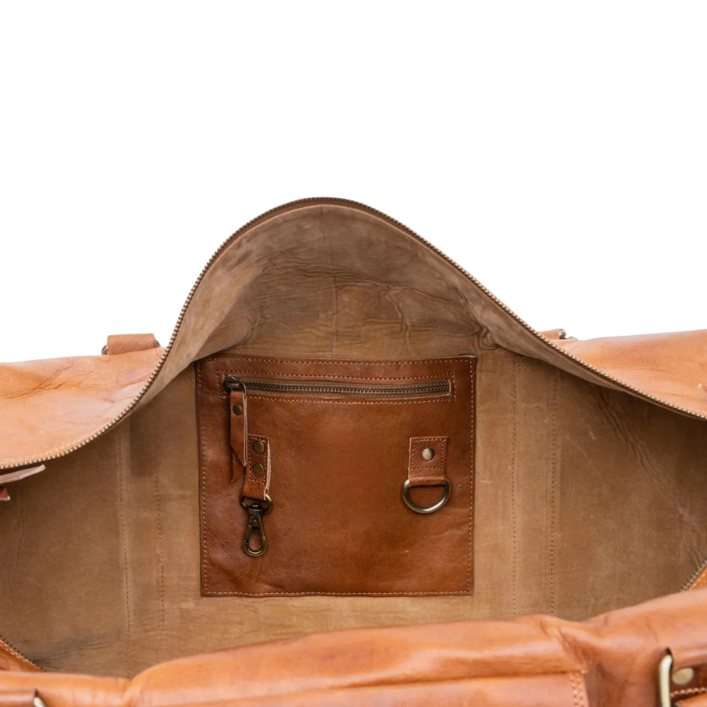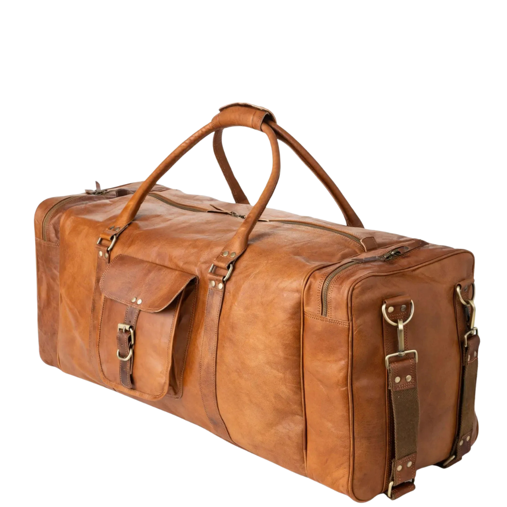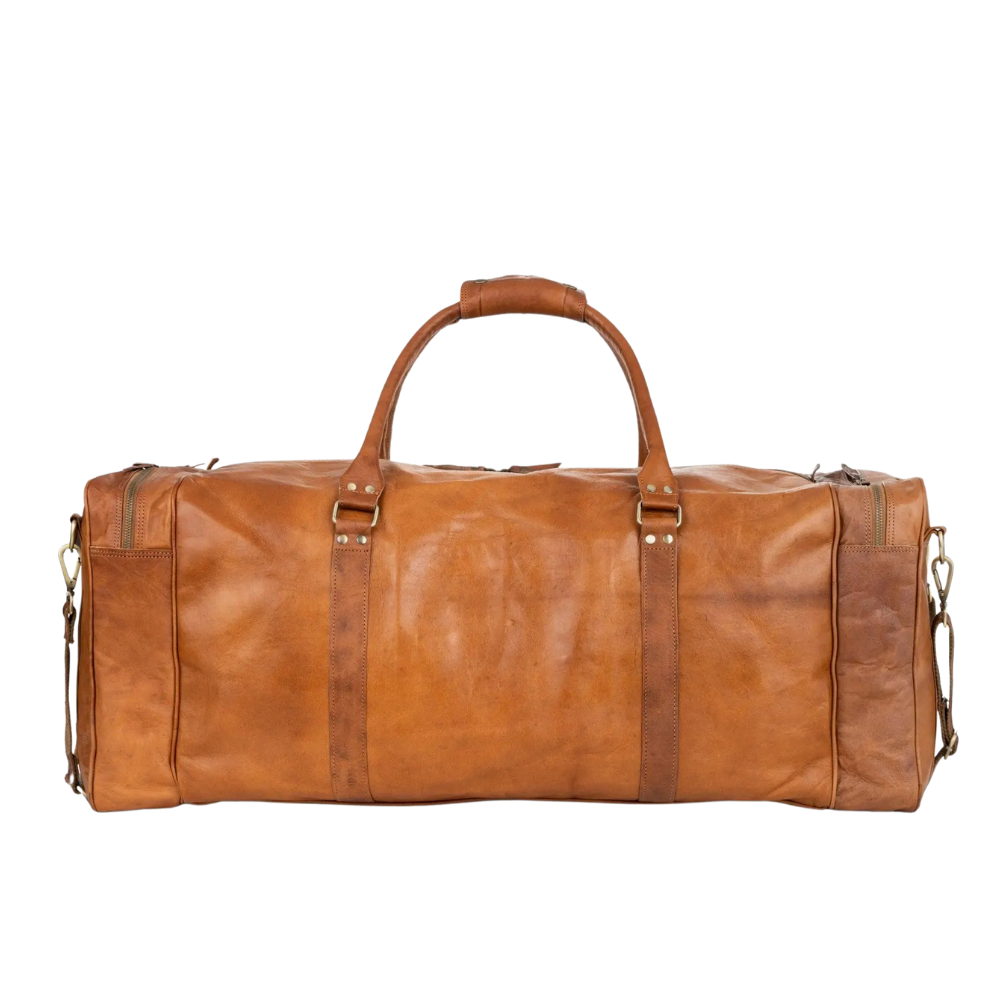 Quirvow Moroccan Leather Duffel Bag – Full-Grain Vegetable-Tanned Leather, Tan